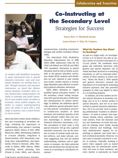 Read Co-Instructing at the Secondary Level Strategies for Success PDF Book PDF